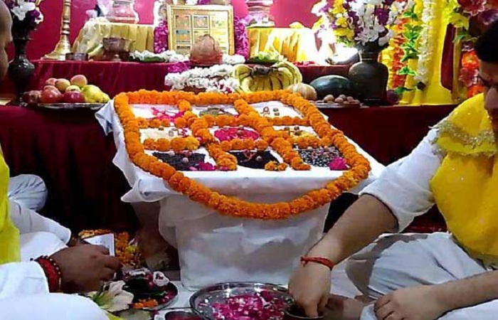 The Navgraha Shanti Puja is conducted strictly according to Vedic vidhi-vidhan after careful analysis of the individual’s birth chart. The ritual begins with Ganesh Puja and Kalash Sthapana, followed by invocation of all nine planets through specific mantras, offerings, and symbolic worship. Each planet is worshipped individually with its prescribed colors, flowers, grains, and sacred materials, ensuring proper respect and balance. The puja also includes Navgraha mantra jaap, havan, and complete aarti, creating powerful spiritual vibrations that help neutralize malefic planetary effects and strengthen benefic influences.